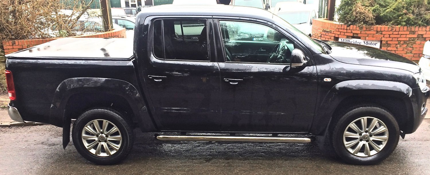 2015 (65) Volkswagen Amarok 2.0 TDi 180 Highline Automatic pick up DC in Deep Black with Full VW service history including Belts , Full Grey leather interior Sold with 6 months nationwide parts and labour warranty , 12 months AA Assistance , HPI clear , Minimum 6 months MOT Competitive finance available