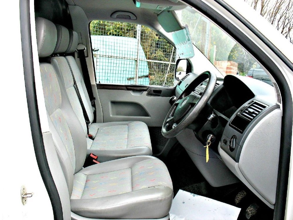 One of the last more powerfull Volkswagen Transporter T5 T30 2.5 TDi 130 bhp 6 speed swb in Gray White with grey inca interior a one owner vehicle with service history a clean example with 12 mths nationwide mechanical breakdown insurance ,spec includes, Twin cup holders, 12v socket, Height adjustable drivers seat, Steering column height and rake adjustment, Twin passenger seat with under-seat storage,Electric windows and mirrors, Air re cycle option,Full bulkhead, Part exchange welcome and we offer Competitive finance rates , Euro 4 , 3 seater cab , height adjustable drivers seat , under-seat storage , steering column rack adjustment , electric windows , electric mirrors , radio CD player , Full bulkhead , Lockable glove-box , side loading door , unglazed barn doors , ply lined , 6 Month Nationwide warranty Parts and Labour, We have a large selection of VW,s in stock please call for more details