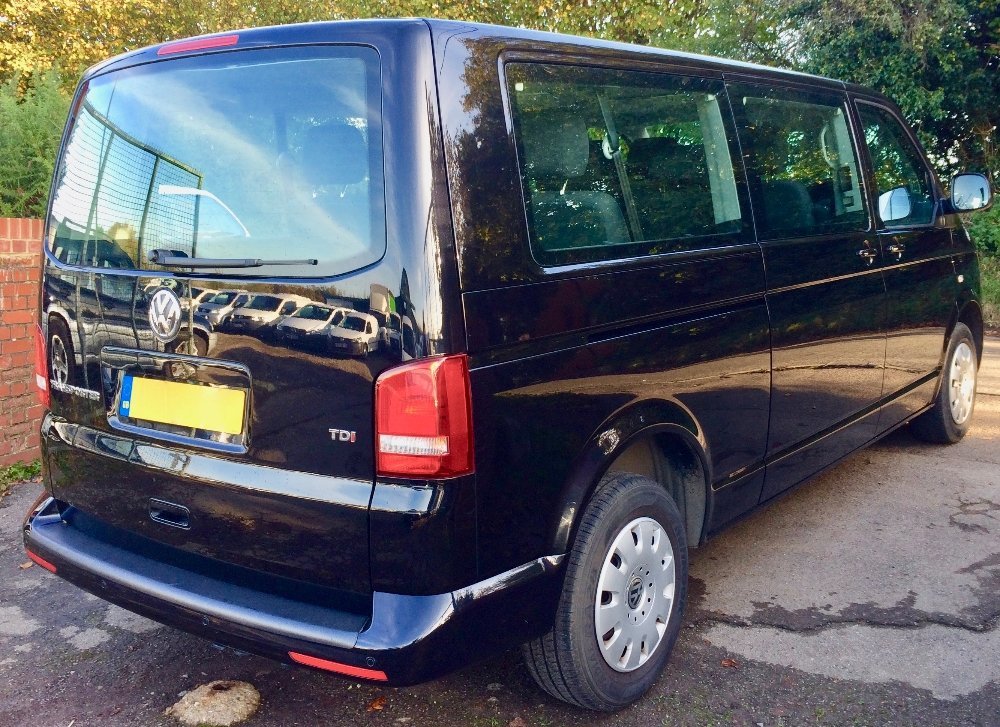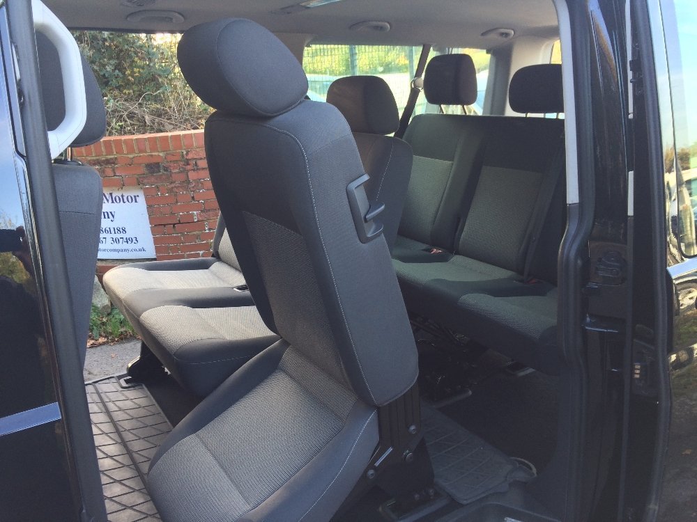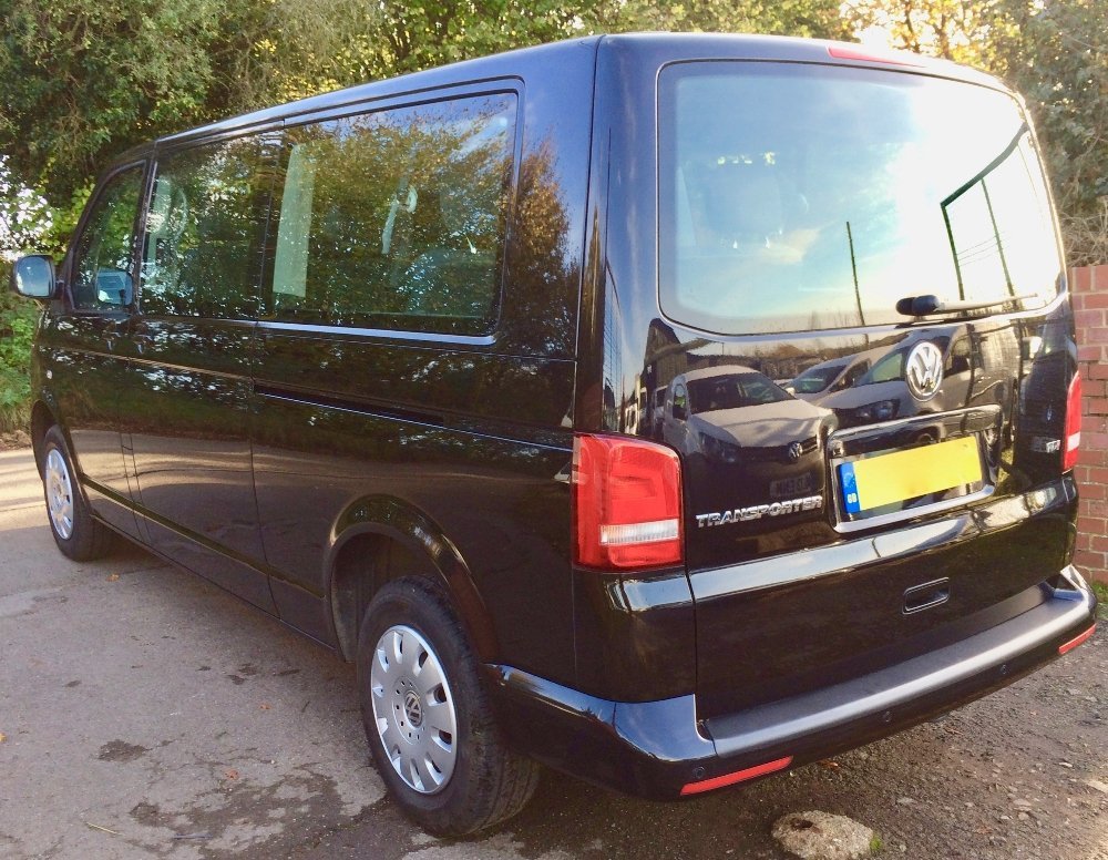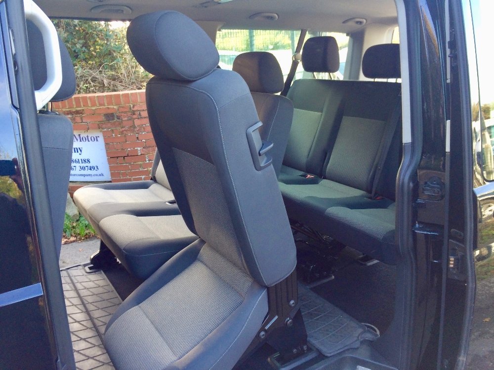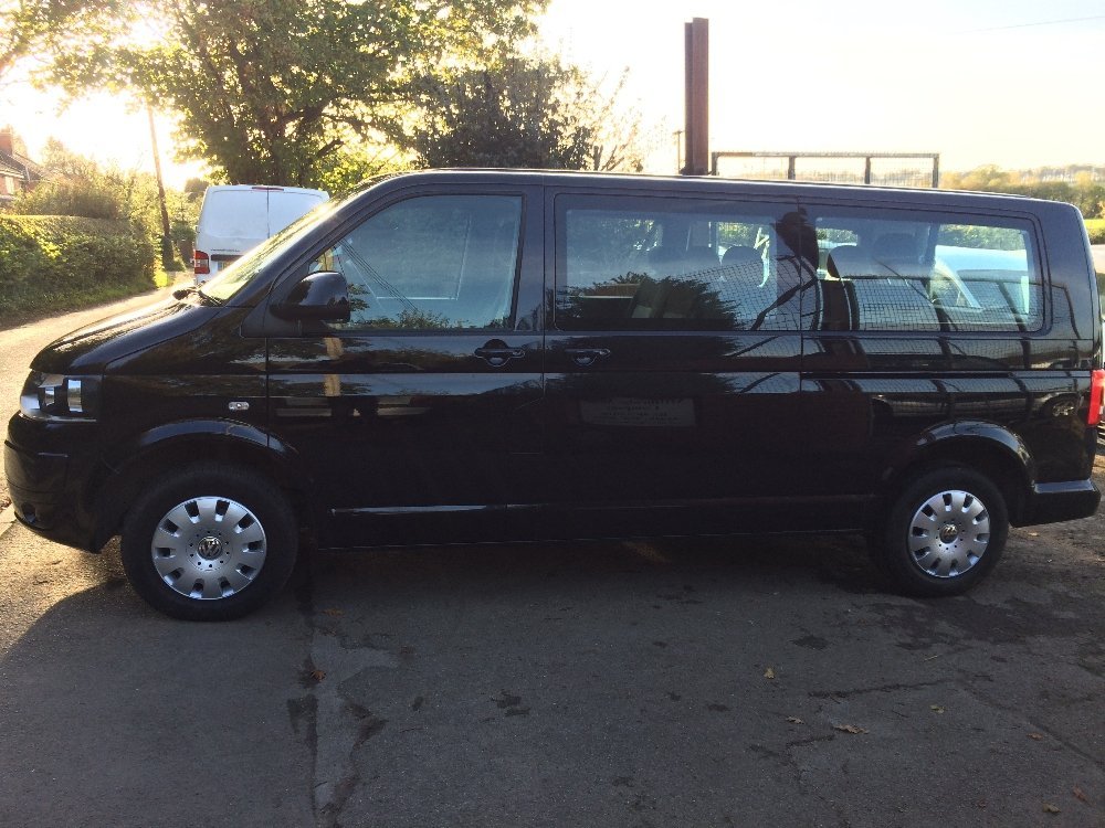 A 2015 Volkswagen Transporter Shuttle 2.0 TD SE 9 seater MPV Diesel Automatic clean low mileage (40000mls) no vat VW Shuttle SE 2.0 TDi 140bhp DSG (auto) LWB van 9 seater in Deep Black with anthracite cloth interior a 2 owner vehicle with full service history , The SE speck which includes front and rear air conditioning, overhead lighting and ventilation, Double side loading doors with opening windows, Glazed rear tailgate, Luggage compartment with securing hooks and 12v socket, Side blinds, Front and rear cupholders, electric operated windows and mirrors, Radio/ CD Player, Twin passenger seat with underseat storage, Captain drivers seat with height adjustment, Steering column height and rake adjustment, 12v socket, Cruise control, Parking sensors, Remote central locking, , Sold with nationwide 12mth mechanical breakdown insurance, Finance / Loans arranged Buy this shuttle from £460.36 a month Please call 01672 861188 for further details